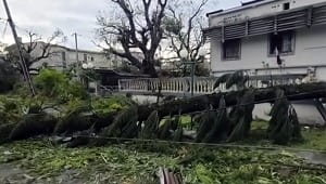 Уламки, пошкоджені будинки та повалені дерева на сході Мадагаскару після того, як тропічний циклон Гезані обрушився на узбережжя 10 лютого. Влада та гуманітарні організації оцінюють масштаби руйнувань та координують зусилля з надання допомоги. Скріншот із YouTube / Global News