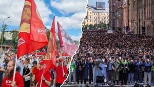 В минувшее воскресенье в Москве состоялся масштабный крестный ход в честь Собора Московских святых, который возглавил патриарх Кирилл. Это мероприятие выглядело пафосно и воинственно, однако оказалось значительно менее масштабным, чем празднование мусульманского праздника Курбан-байрам в Москве.