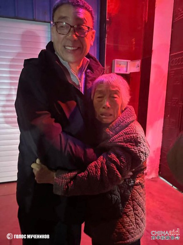 Пастор Чжан Шаоцзе (张少杰牧师) обіймає свою 84-річну матір після відбуття 12-річного тюремного терміну та повернення додому 16 листопада.