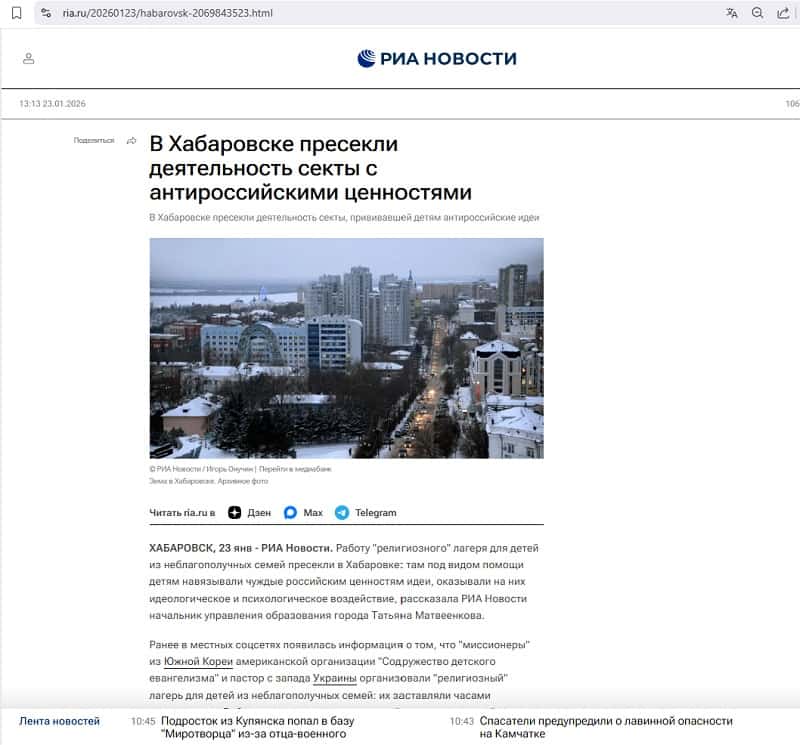На фото: Скріншот статті, розміщеної на сайті ria.ru (https://ria.ru/20260123/khabarovsk-2069843523.html)