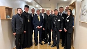 В завершальний день перебування в Осло, 22 жовтня 2025 року, делегація Всеукраїнської Ради Церков і релігійних організацій (ВРЦіРО) зустрілася з Міністром закордонних справ Норвегії Еспеном Бартом Ейде. Зустріч відбулася в приміщенні МЗС Норвегії.